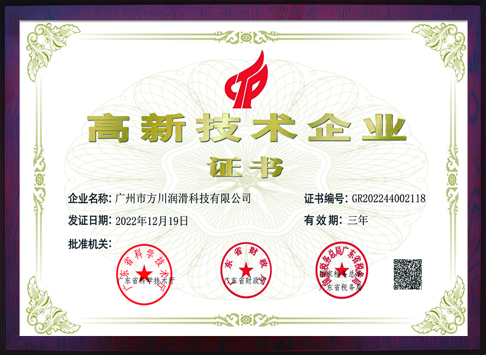 公司成立于2005年,作為國家高新技術企業,是廣東省潤滑油行業協會金屬加工液分會會長單位、中國表面工程協會常務理事單位,廣州市新材料產業發(fā)展促進會會員單位,也是美國磨潤協會(STLE)會員。公司被評為廣東省守合同重信用企業、黃埔區瞪羚企業、廣州市 “專精特新”企業,堅持質量求生存,以誠信求發(fā)展,做中國人自己的產品,堅持在細分領域將產品做到極致。